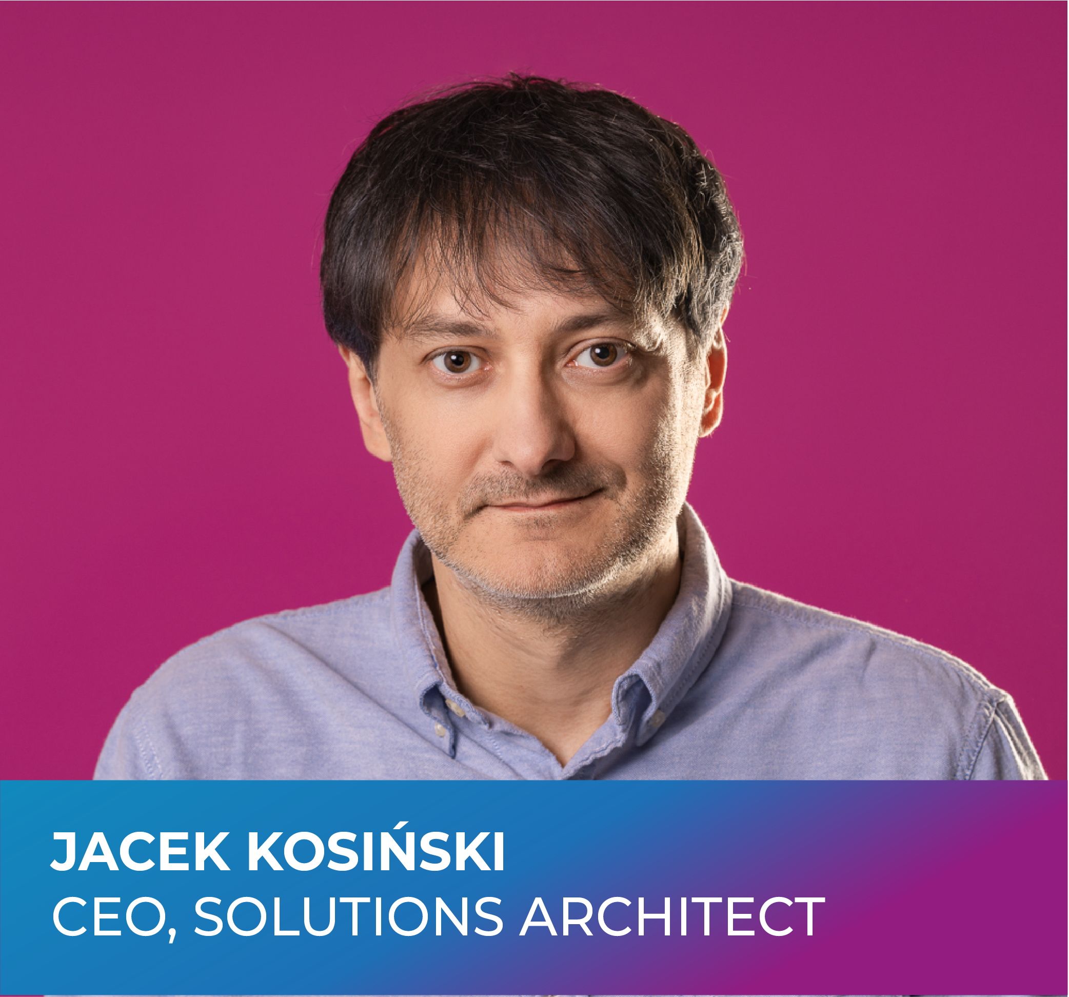 Jacek jest CEO w SoftFlow. Zarządza zespołem, nadzoruje projekty, określa strategie i cele firmy. Jako inżynier projektuje, wdraża